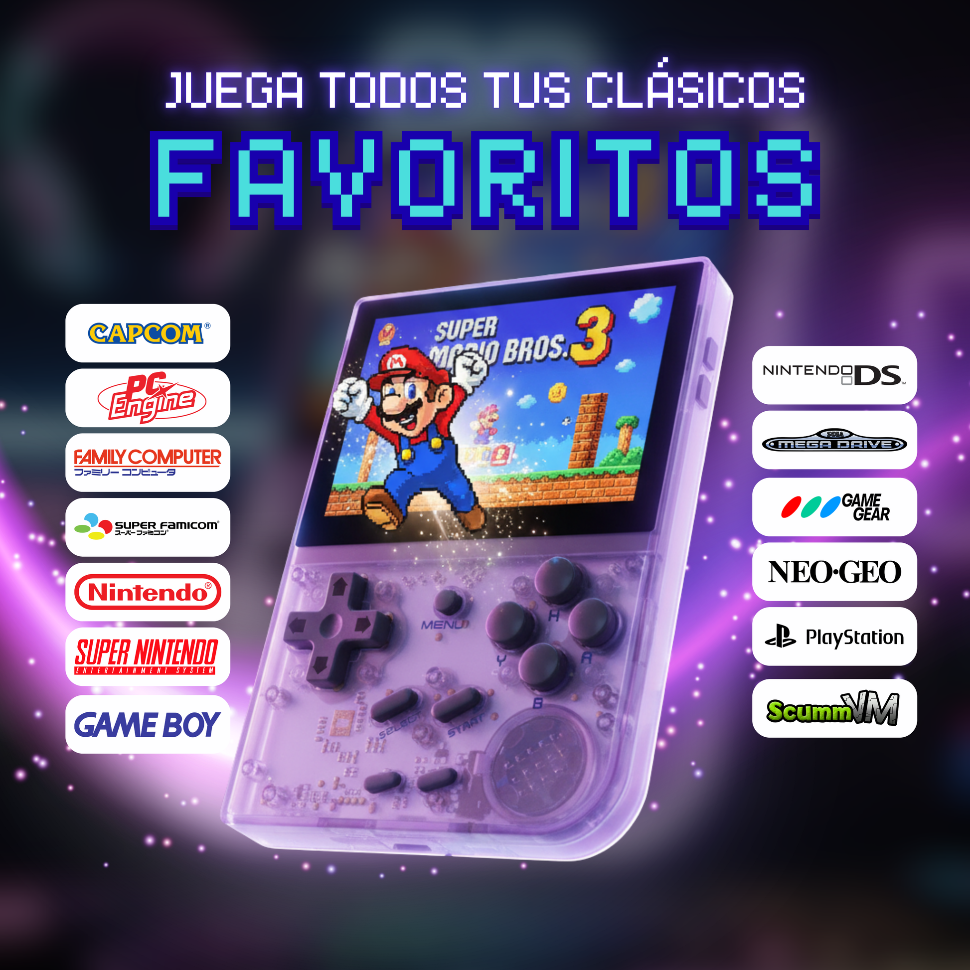 - Sin sticks analógicos (D-Pad + A/B/X/Y + L1/L2 + R1/R2)